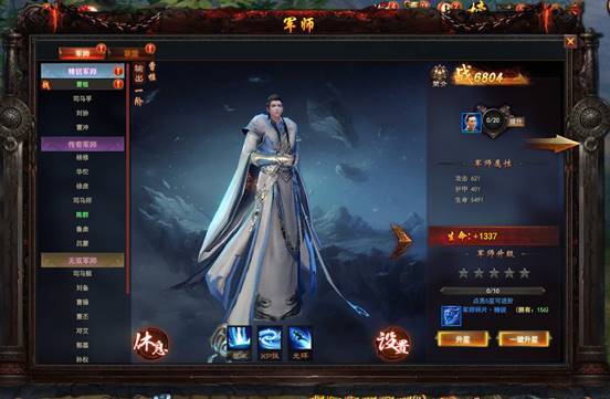 军师激活后可在军师界面左方消耗同类型的军师精魄进行提升军师本体属性,大幅增强军师技能伤害和战力。
