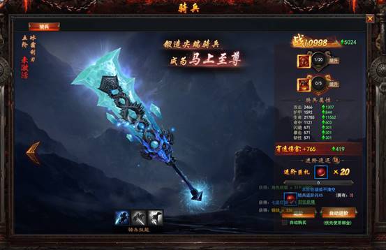 在骑兵界面右下角同样拥有升阶按钮通过消耗骑兵进阶丹进行升阶来提升骑兵属性(注意:当达到固定某阶以上时,每日未升级的祝福值会清空哦),达到足够强大的骑兵后也会开启通过消耗骑兵资质丹以及骑兵总属性丹来提升骑兵属性。